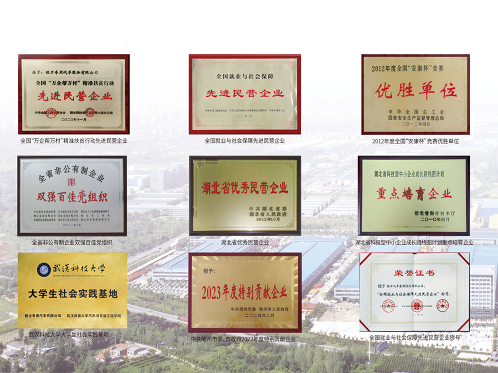 Chengli Automobile Group Co., Ltd., abbreviated as "Chengli Automobile Group", is located in Suizhou City, Hubei Province, the hometown of Emperor Yan and Shennong, the birthplace of ancient music, and the capital of special vehicles in China. Its predecessor was Hubei Chengli Special Vehicle Co., Ltd., established in 2004 with a registered capital of 100 million yuan. It is a diversified group company that integrates research and development, manufacturing, sales, finance, education, services, real estate investment, and other businesses of automobiles, special vehicles, new energy vehicles, automotive parts, and emergency equipment. Ranked 378th among the top 500 private enterprises in China and 4th among the top 100 private manufacturing enterprises in Hubei Province in 2023. After more than 10 years of leapfrog development, the group now covers an area of over 3000 acres, with a construction area of 1.2 million square meters, more than 13000 employees, and over 5000 sets of various large-scale production equipment. The group has 16 subsidiaries and four major production bases in the southern suburbs of Zengdu District, Suizhou City, Zengdu Economic Development Zone, Huangpi District of Wuhan City, and Dongjin New District of Xiangyang City. It can produce 50000 sets of automotive chassis, 100000 special vehicles, 10000 new energy vehicles, and 20000 sets of emergency equipment annually.